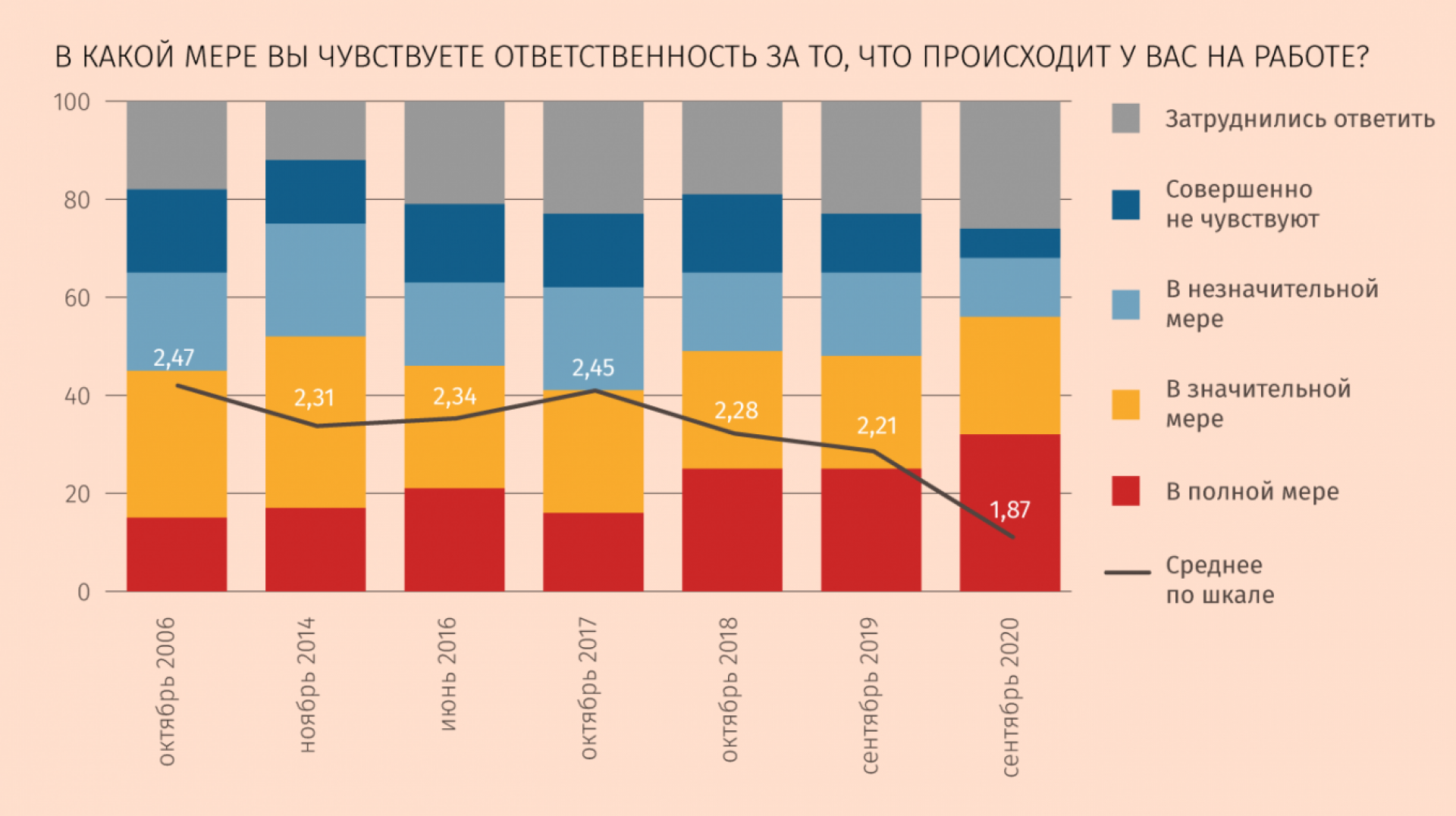 Вместе с тем динамика общественного мнения свидетельствовала о резком росте чувства ответственности за страну в 2017 и 2018 гг., триггером которой стало массовое раздражение от принятия пенсионной реформы, приглушившей патерналистские ожидания и обострившей забытое чувство (каждый второй был готов лично выходить на акции протеста против ее принятия).