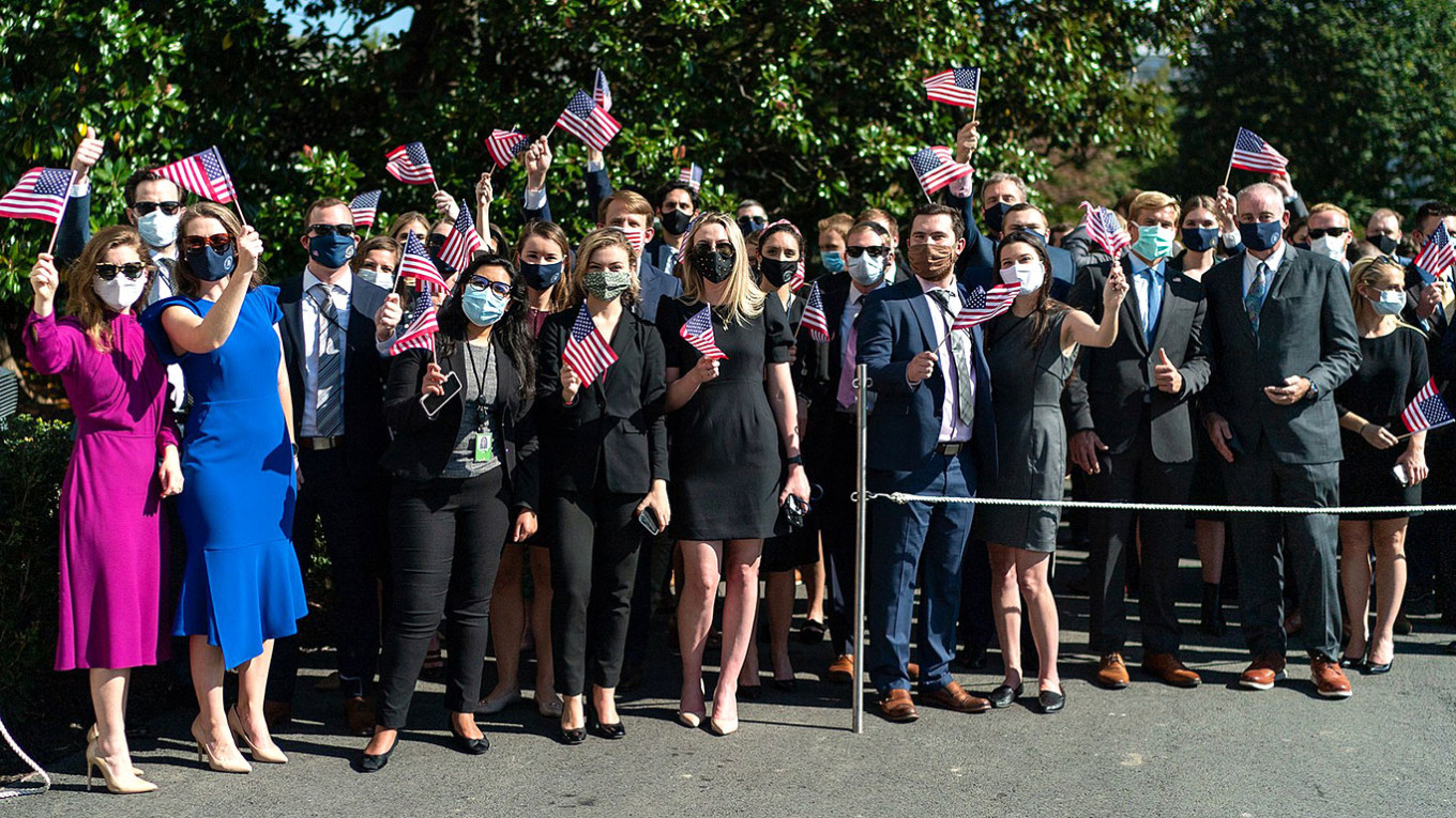 А Дональд Трамп находится в Белом доме, что не совсем традиционно (обычно действующий президент покидает Белый дом в ночь выборов, так как по закону на предвыборную кампанию нельзя тратить государственные средства), хотя понятно в связи с ограничениями из-за пандемии.