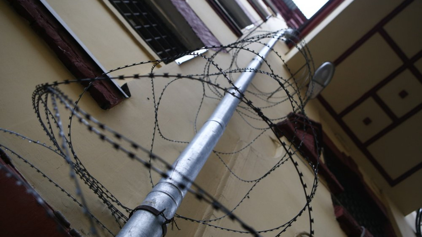 Ворота тюрьмы заблокированы грузовым автомобилем и снегоуборочной машиной, неподалеку стоит автозак и кинологическая служба. Рядом с СИЗО выставлены туалеты и заграждения.