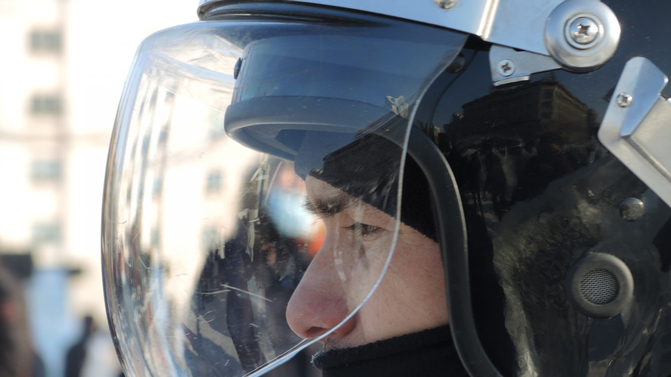 Фотограф Дмитрий Марков продал на благотворительном аукционе фотографию, на которой изображен сидящий под портретом Владимира Путина сотрудник ОМОНа в одном из отделений московского ОВД. Туда Маркова доставили в день суда над политиком Алексеем Навальным.