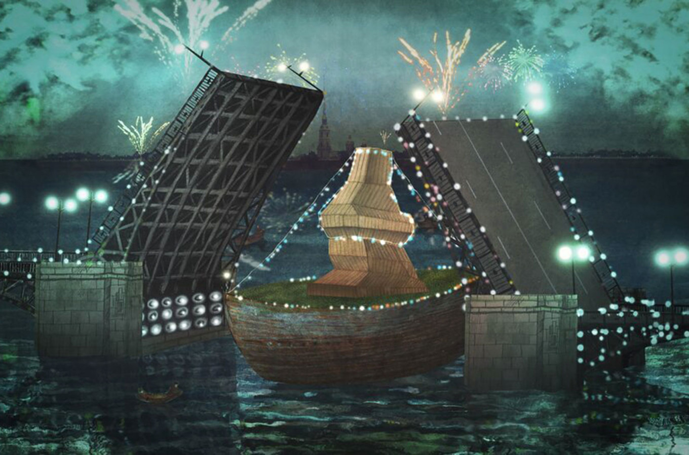 — Художников было много, это неизбежно при такой сложной композиции. Многие рисунки сделала замечательная питерская художница Марина Азизян, известная по работе в театре, кино, книжным иллюстрациям. Ее эскизы развивали, разрабатывали, привнося много своего и делая параллельно другие эпизоды, молодые художники. В частности, две вгиковские звездочки, Саша Павлова и Варя Яковлева, Настя Головань (она же теперь Настя Самбон), Саша Храмцов — первый выпускник студии «Шар», окончивший ее как режиссер, но он прекрасный аниматор и художник-постановщик. Саша выполнял эти функции в своей последней работе — анимационной версии фильма «Кин-дза-дза». А тут он делал большой эпизод в акварельной технике. И было много других художников — картина делалась большими силами.