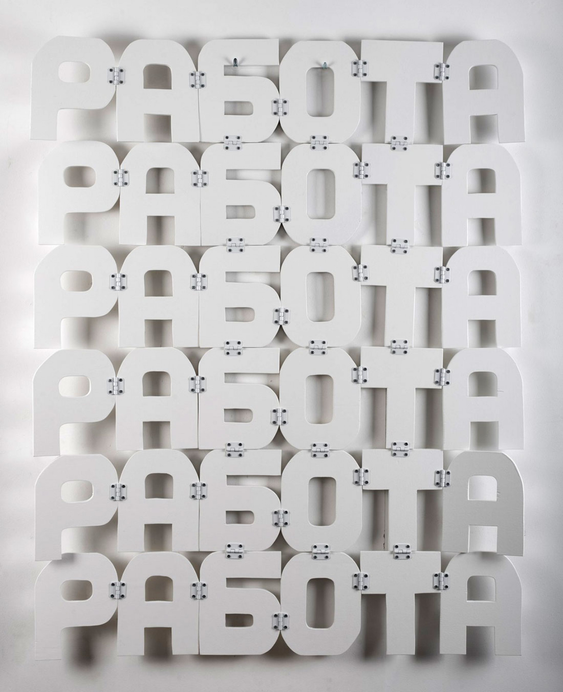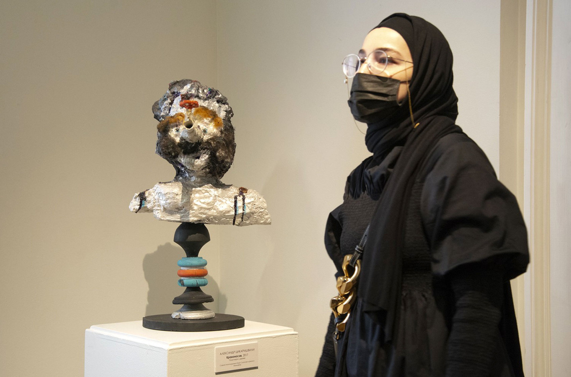 Скульптор Константин Бенькович работает с металлическим прутом — из такого однообразно прямого материала получаются не только рельефы плакатной силы с тремя разноцветными балаклавами «Пусси Райот» или четырьмя «коктейлями Молотова», но и ржавый «Душ», ставший в залах выставки простой и эффектной скульптурой.