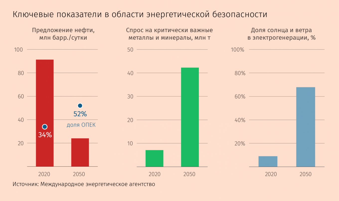 Хотя потребление нефти сильно сократится, доля стран ОПЕК вырастет — с 34% до примерно 52% к 2050 г., прогнозируют эксперты МЭА.