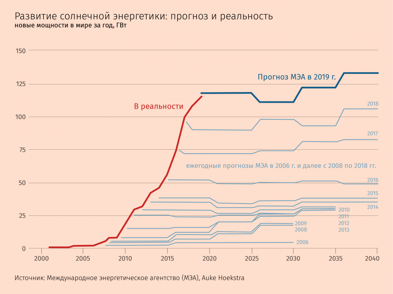 «Если оглянуться на прошедшее десятилетие, сценарии МЭА всегда немного отставали от жизни, — говорит Рогель. — МЭА — медленная, серая, ржавая, запыленная машина, которая двигается не спеша. Я очень рад увидеть, что МЭА наконец-то сформулировало сценарий перехода к нулевым нетто-выбросам».