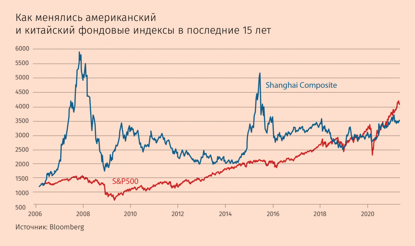 При этом у китайского рынка большой потенциал. По соотношению капитализации рынка к ВВП (порядка 0,7х) Китай сильно отстает от США (порядка 2х). Его рынок торгуется по относительно невысокому агрегированному мультипликатору P/E — 12,4 (Shanghai Stock Exchange Composite Index), в то время как для S&P 500 этот показатель составляет 22,5, а для MSCI World 20,7. Китайский рынок ликвиден (среднедневной оборот акций превышает $100 млрд), на нем много розничных инвесторов (более 180 млн уникальных инвестиционных счетов). При этом доля частных инвесторов в Китае — порядка 12% населения против 43% в США.